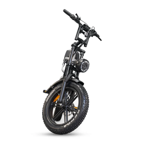 De 20 × 4 inch fatbike banden zorgen voor uitstekende grip en stabiliteit op verschillende ondergronden zoals asfalt, klinkers en zandpaden. Dankzij de geveerde voorvork ervaar je een comfortabele en stabiele rit, zelfs op minder vlakke wegen.